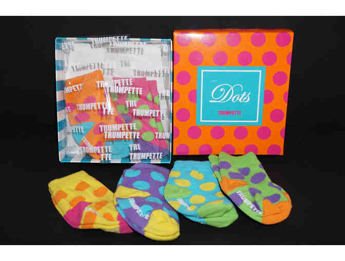 Keep tiny toes warm with these adorable Trumpette socks, 6 pair, dot pattern 0-12mo.