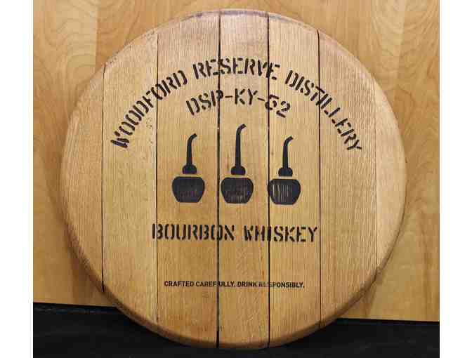 This is an authentic 21" white oak barrel head from Woodford Reserve.