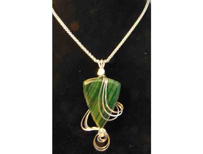 This beautiful Nephrite Pendant is approximately 1.5 inches wide by 2.5 inches tall and comes on a 22-inch surgical stainless steel barrel chain. Nephrite is a type of jade. It is a “one of a kind” hand made piece of jewelry made by Silvery Moon Designs. Find them on line at Silverymoon10.com.