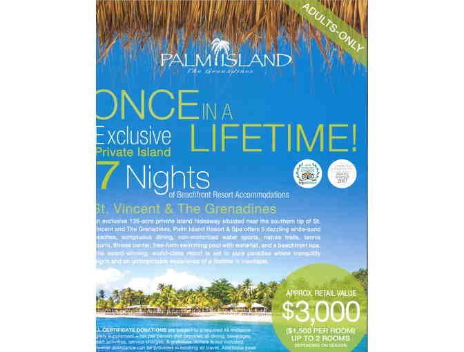 An exclusive 135-acre private island hideaway situated near the southern tip of St. Vincent and The Grenadines, Palm Island Resort & Spa offers 5 dazzling white-sand beaches, sumptuous dining, non-motorized water sports, nature trails, tennis courts, fitness center, free-form swimming pool with waterfall, and a beachfront spa. This award-winning, world-class resort is set in pure paradise where tranquility reigns and an unforgettable experience of a lifetime is inevitable.