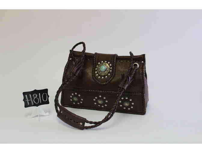Brown Leather Bag with Silver Conchos and Turquoise - Four Winds West
