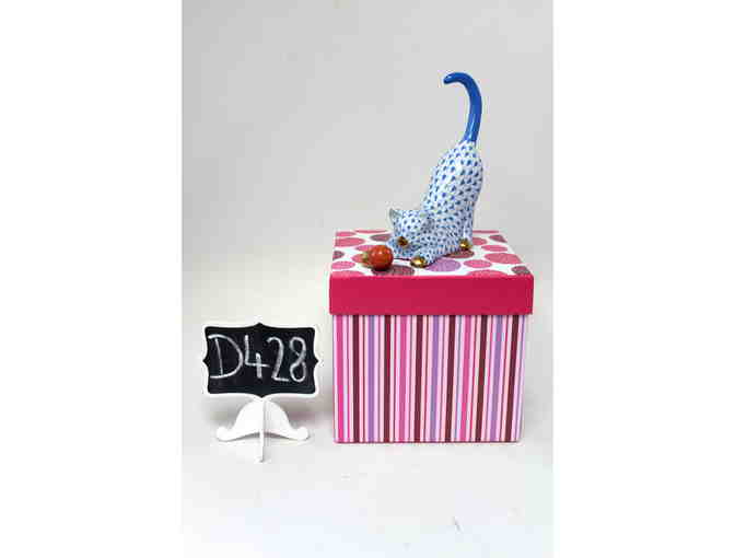 Herend (founded in 1826) “Cat with Ball” hand painted Blue Fishnet pattern porcelain cat figurine. Identified with Herend’s “First Class Quality” trademark (1949 to Present) “HEREND HUNGARY HANDPAINED.” 2”W x 5”H x 5”D.