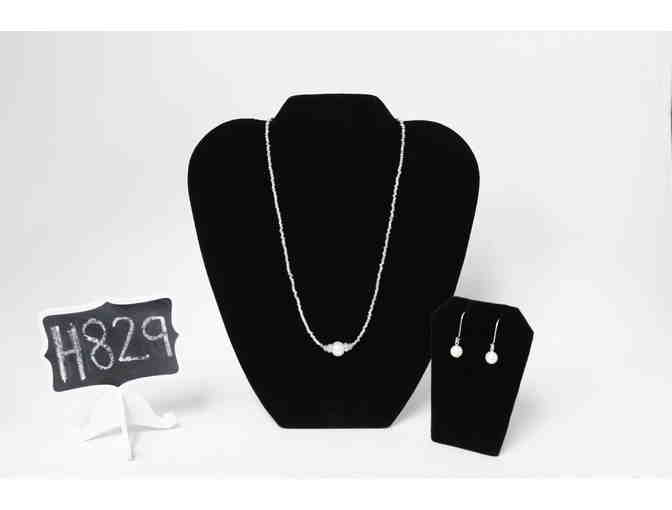 Sterling Silver Swarovski and Fresh Pearls Necklace with Matching Earrings