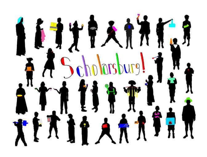 Silhouettes of the students and teachers of class 4-210 with their Colonial Times props printed on a 24”x 36” canvas.