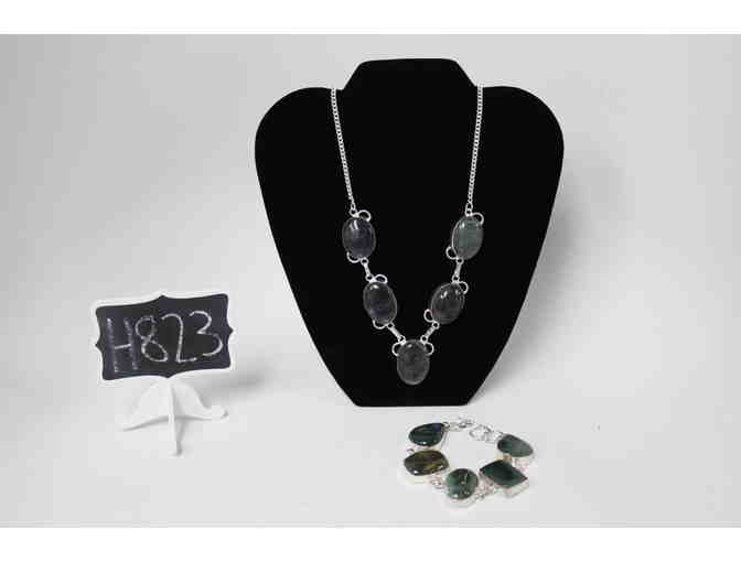 Sterling Silver Plated Five Gemstone Necklace and Bracelet Set