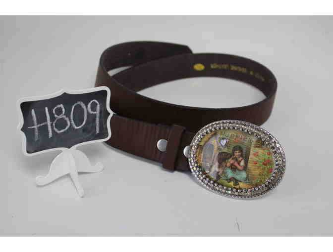 Handmade Brown Leather Belt with Silver Oval 'Girls with Dogs' Buckle