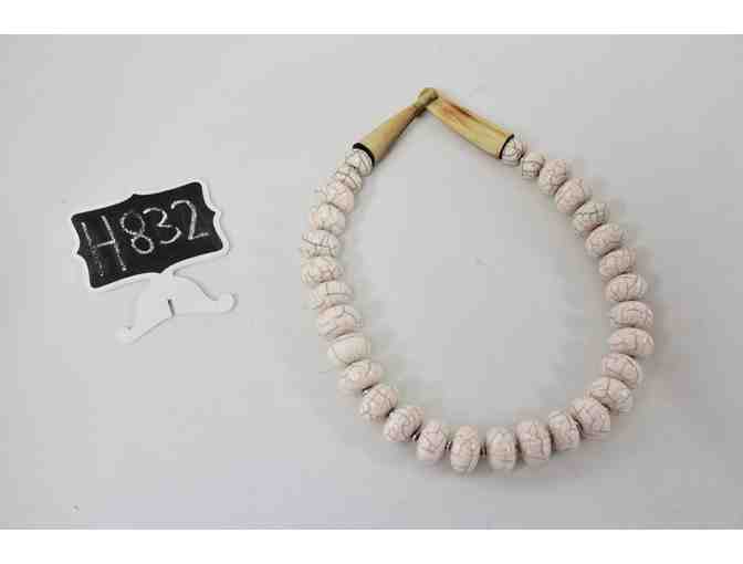 White Imitation Stone Necklace with Unique Wooden Clasp
