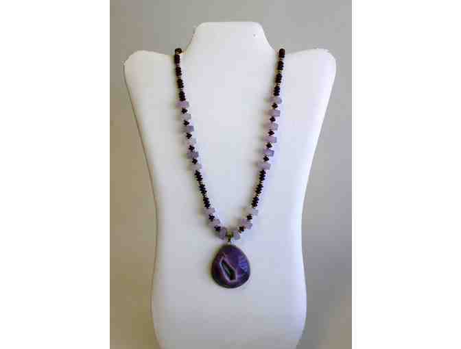 Amethyst Kemalyke Pendant Necklace - Fused Glass and Gem Creations by Adriana