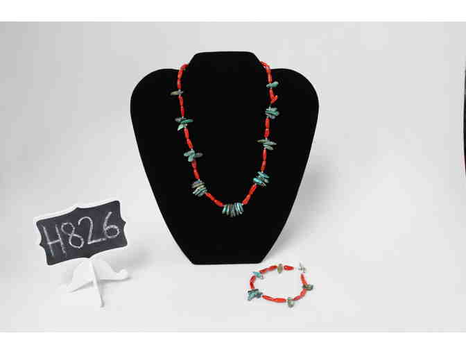 Red coral and turquoise necklace and matching bracelet.