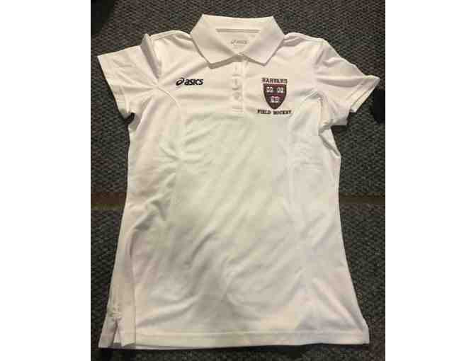 Harvard Field Hockey asics team polo with Harvard crest - white size small.