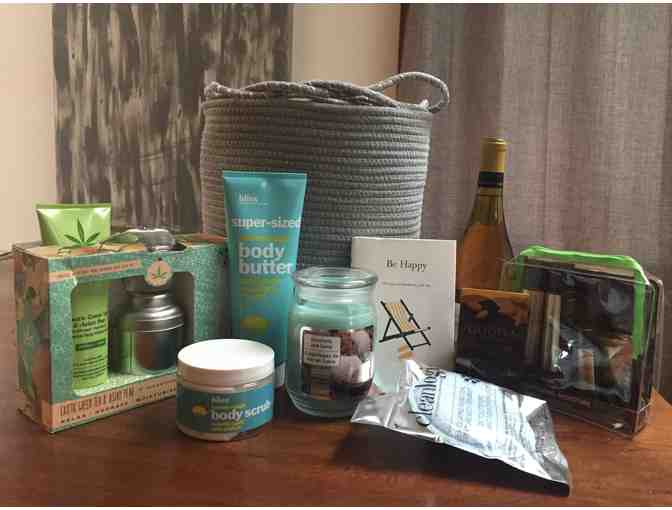 Take a load off and enjoy a spa experience in the comfort of your own home with the selection of items in this basket. Body, mind and soul will benefit when you take some "me" time with these goodies: