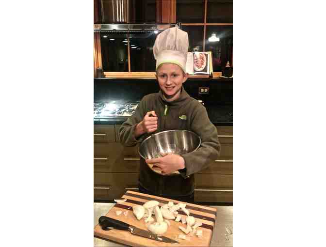 The Quisel/Snyder family will do the shopping, bring all the ingredients and cooking implements, and arrive at your house two hours ahead of dinner to create and serve a healthy and delicious dinner chosen and prepared by your child(ren)!