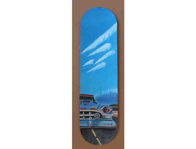 Artist's Statement: Ever since I was a little kid, I've had a love for cars because of my dad. The ones that interest me the most are old cars. That's the reason I picked an old Cadillac to paint on a skateboard.