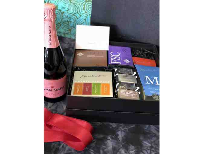 Recchiutti Confections Sharing Gift Box and a bottle of Mumm Napa
