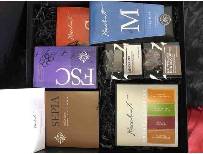 "Includes: Sepia box, Fleur de Sel Caramels, Cacao Nib + Fleur de Sel Mendiants, Malted Dark Milk Revolutions, Dragee Sampler, Dark Milk Bar, Semisweet Bar, and Bittersweet Bar.