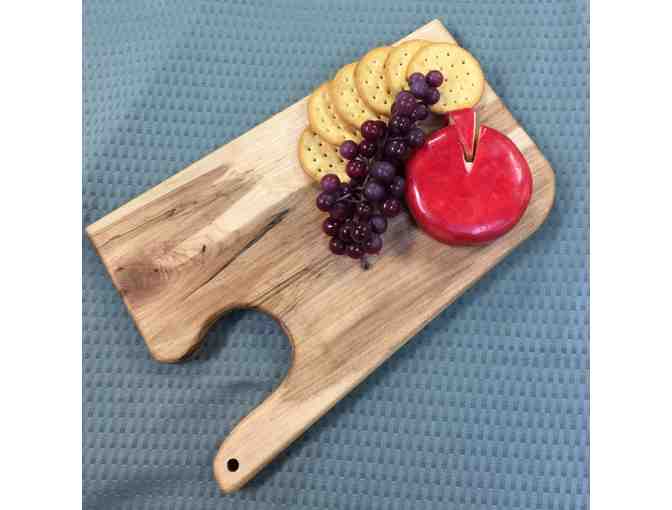You are bidding on a 13 1/2 inch by 8 1/2 inch hickory cutting or cheese board handcrafted by Jim Marsh.