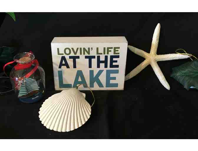 - Loving the Lakes wooden shelf sign, 3.5" high by 5" long