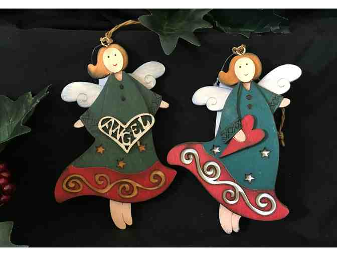 Hanna's Handiworks wooden Heart Angels each measuring 3.5" high by 5" long