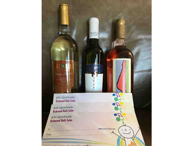 Richmond Nail Salon - 3 Manicure/Pedicures and 3 Bottles of Wine