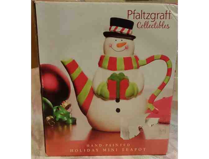 You are bidding on a hand painted Cheerful Snowman holiday "Mini Teapot" by Pfaltzgraff Collectables. New in box.