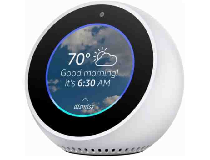 Echo Spot brings you everything you love about Alexa, in an all-new stylish and compact design that can show you things. Just ask to see the weather, get the news with a video flash briefing, set an alarm, see lyrics with Amazon Music, see your calendar, browse, and listen to Audible audiobooks, and more. Personalize your Spot with a collection of clock faces to suit your style or set a photo background from Prime Photos. Plus, make calls to friends and family or make video calls to anyone with an Echo Spot, Echo Show, or the Alexa App.