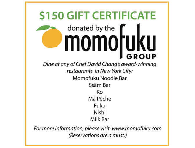 $150 Gift certificate to dine at any of Chef David Chang's award-winning MomoFuku Restaurants in NYC