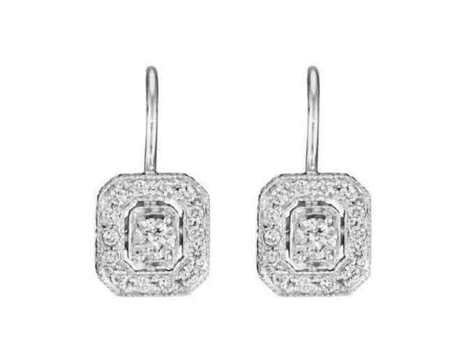 Buy your raffle item now for a chance to win these beautiful Penny Preville emerald shape diamond earrings with center diamond on French wire.  Drawing will be at the live event on April 21st but you do not need to be present to win.