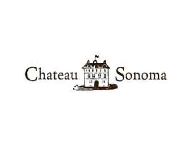 Chocolat coffee table book, two sonoma mugs, chateau sonoma tea towel and rustic checken wire basket with wooden handle from Chateau Sonoma