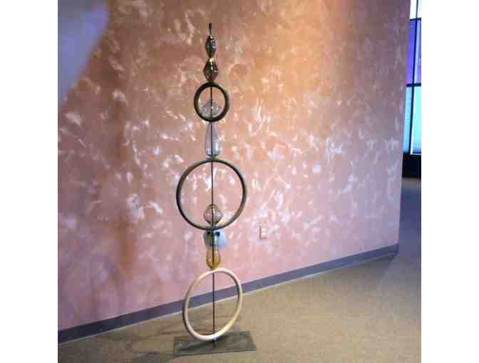Tall glass and ring structure which features a sturdy metal base on which the different glass and ring pieces can be assembled in any order.