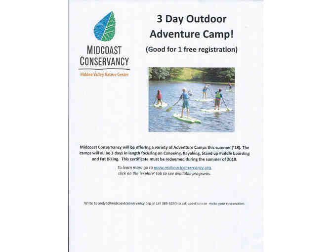The ultimate outdoor summer adventure camp awaits your child! Midcoast Conservancy's three day outdoor adventure camp will be the highlight of your child's summer camp experiences! To be redeemed in 2018.