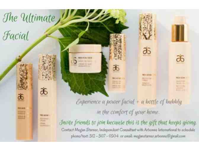 Experience a power facial and bottle of bubbly in the comfort of your home! Invite friends to join in too!  Winner will receive an In-Home Facial Workshop from Megan Starner, an Arbonne Independent Consultant.
