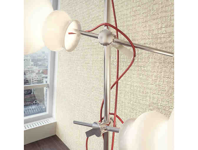 Ideal in both modern and classic environments rich in personality, the Blob lamp is designed to be an undoubtedly original item. Thanks to a reinterpretation of the sinuous shapes of nature, it creates an original scenic impact in any environment. The adjustable height metal upright holds two coloured glass lights that spread the light uniformly and directionally around the area.