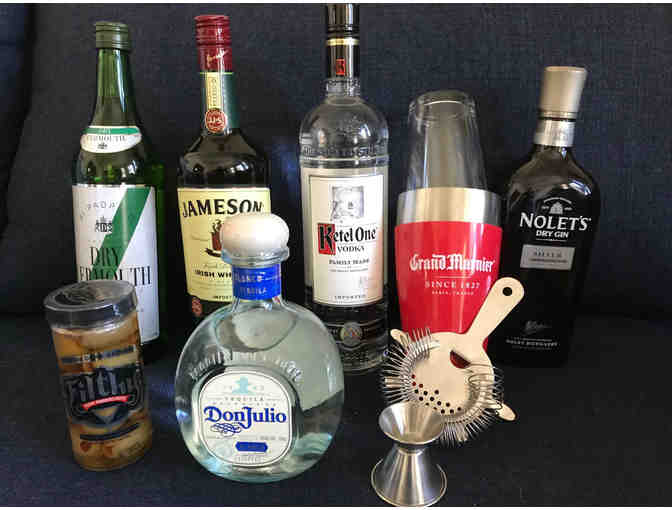 Be the winning bidder and claim this "instant bar" that includes bottles of Jameson Irish Whiskey, Ketel One Vodka, Nolet's Dry Gin, Don Julio Tequila and Di Padrino Dry Vermouth along with a jar of Filthy Pimento Olivers and a shaker set.