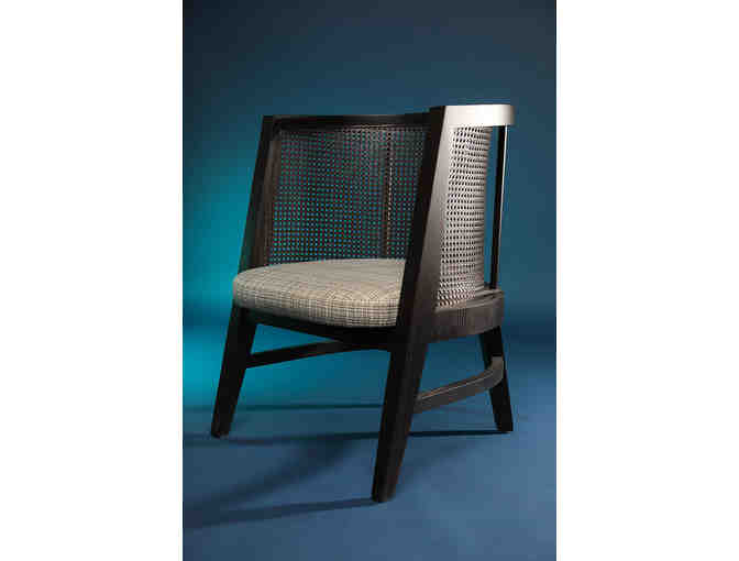 Vintage inspired barrel back lounge chair by JL Furnishings, a JLF collections company. Unique cane back and curved stretchers add visual interest and modern flare.