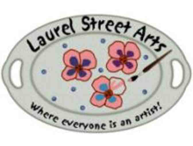 Laurel Streets Arts, a drop-in art studio and party place for kids and adults. We offer pottery painting, mosaics, glass fusing, and more, with free instruction and lots of ideas and design tools to help you create a masterpiece. No experience is needed and even the "artistically challenged" are sure to succeed.