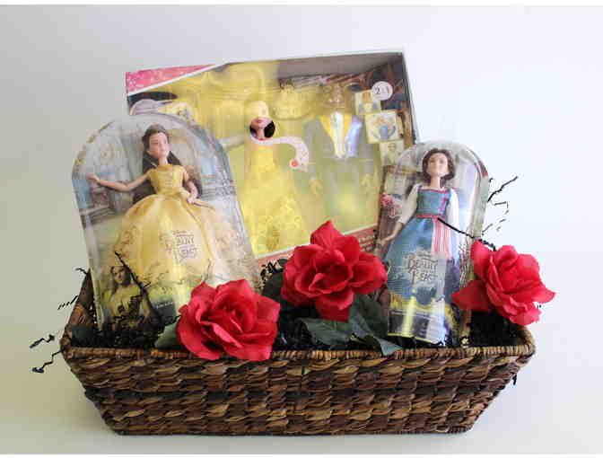 Disney's Belle and the Beast share a romantic first dance with the Disney Princess Enchanted Ballroom Reveal set! Little dreamers can pretend to recreate the iconic dance scene from Beauty and the Beast, where the power of love transforms the Beast into the Prince. Belle is dressed in her signature, shimmery-gold gown, inspired by the one in the movie. Push the button near her heart to play the beloved song, "Tale as Old as Time." Press the switch on the Beast figure's back to turn him from the gristly Beast to the enchanting Prince. Turn his head back to flip the figure's face to reveal the Beast again. Place the 2 dolls on the rose decorated doll stand and glide them across the table to watch them spin like they're dancing to the music.
