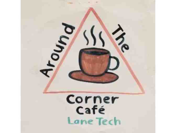 Around the Corner Cafe is run by students in the Lane Tech Cluster Program. The cafe sells coffee, tea, hot chocolate and handmade greeting cards. Working in the cafe allows students to gain real life work experience while providing a valuable service to the school. It is open every school day from 8:30am-10:30am near Door M and offers deliveries to teachers and staff.