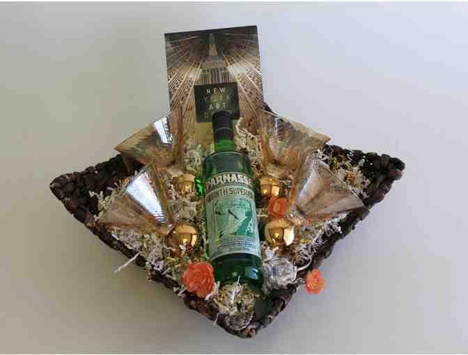 Absinthe has as many nicknames as it does legends. The Green Fairy would approve of this Art Deco inspired basket which includes: