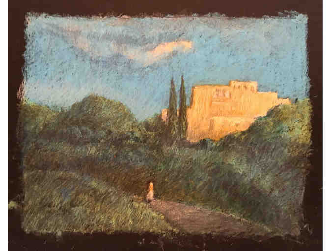 Oil pastel inspired by Paul Flandrin's "Villa Torlonia, Frascali, at Dusk." 2018