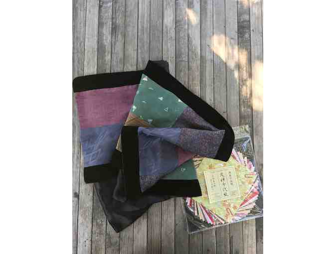 You are bidding on a Vintage Silk Japanese kimono silk scarf, lined in silk satin and silk velvet border, lovely as an accent to any wardrobe. Enjoy bonus origami paper to set the mood.