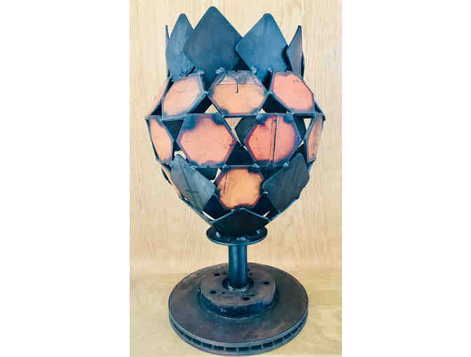 One-of-a-kind upcycled metal planter for outdoor or indoor use. Handcrafted by Solid Metal Arts.