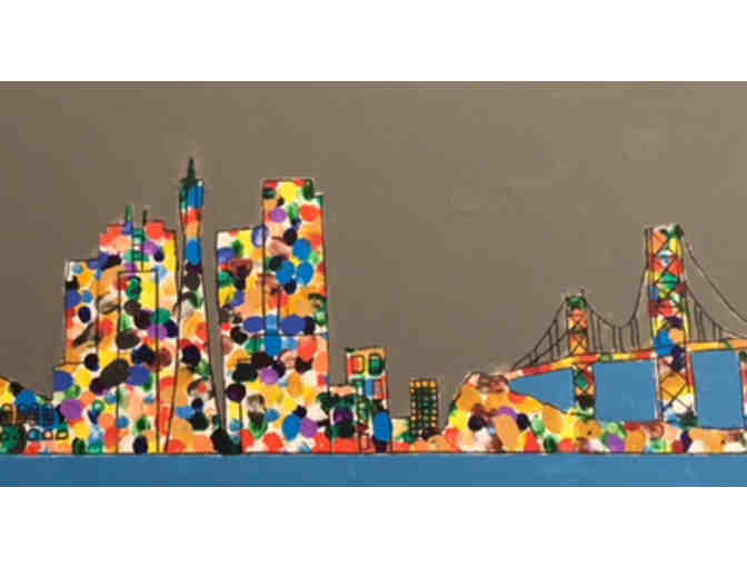Bid on this wonderful San Francisco Skyline (gray sky) 15"x30" canvas with colorful fingerprints by Mr. Barisonek's 5th grade class.