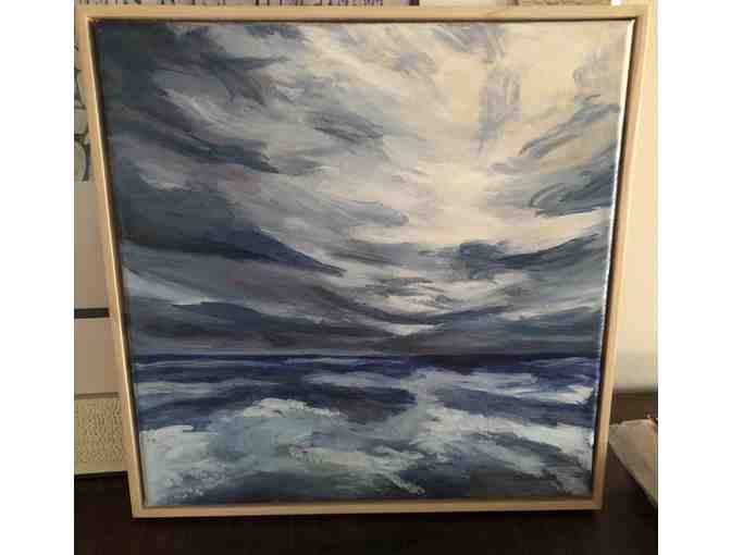 High bidder will enjoy this framed acrylic seascape painting by artist Jessica Parsons Lomeli. This is a 12x12 acrylic painting that has been varnished for U/V protection, framed in a 1/4 inch strip frame, and wired for hanging.