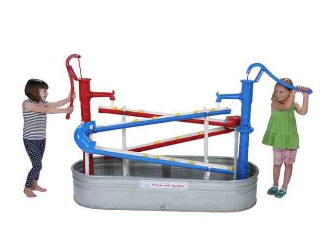 Make your next party a SPLASH with Pump and Splash's kid-powered water pumps! Kids of all ages love cranking the easy-to-operate handles. And once the water flows -- watch out -- wheels turn, buckets tip, and fountains spray! The water is recirculated so water waste is minimal. This is perfect for a hot summer birthday party!