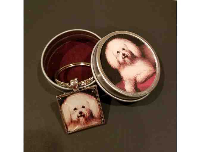Key chain comes within a small box that can be used as a pill box. The decopage method was used for this chain..