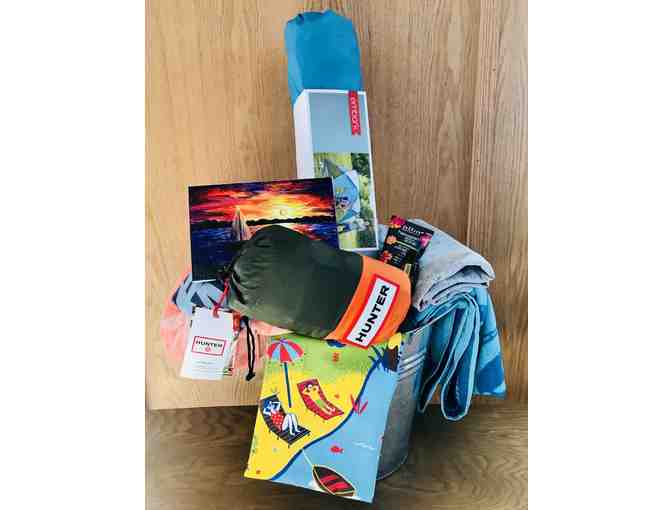 The 5th Grade class can’t wait for warmer weather! Enjoy these essential items for hanging out at the lakes: Beach umbrella and shelter, 2 x-long beach towels, lakes themed dish towel, tree hammock, 2 Bde Maka Ska t-shirts, and a clever $100 visa gift card you can use for eating, or renting canoes, sail boats or paddle boards, and more! Until then, you can dream about it as you gaze at a lakes themed sunset painting made by our very own Sara Rose!