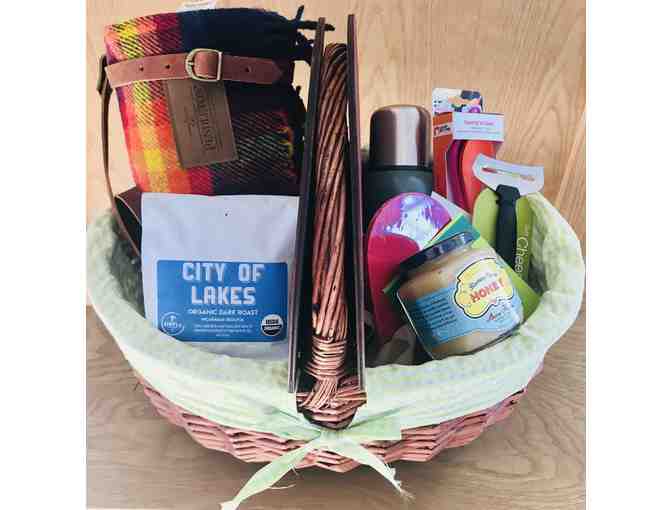 Everything you need for a picnic date with your favorite person(s)! Donated by the 4th grade, this basket includes a real picnic basket, a $25 Wedge gift card, 1lb. of City of Lakes organic coffee and a thermos, a $35 gift card to France 44 Wine and Cheese Shop, sporks, a cutting board and cheese knife, and to round it out, a Pendleton picnic blanket!