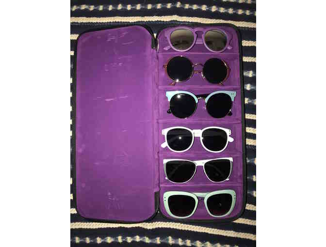 Each set includes 6 pairs of sunglasses and no sets are the same! Each set is valued at over $350. Perverse sunglasses set and travel case for unicorns who must carry multiple pairs wherever they go! This is perfect for festival season or a weekend in Palm Springs. This stylish protective travel case makes the jet set life available to anyone, and there are enough shades in this set for everyday of the week...besides Monday because who gets out of bed on Mondays anyways.