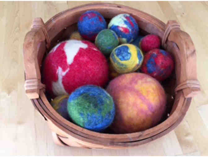 In the Maple classroom little hands have been busy felting balls of various sizes. We filled a whole basket full of balls, or, as you also may say: a basket filled with endless possibilities of play and fun! Enjoy!