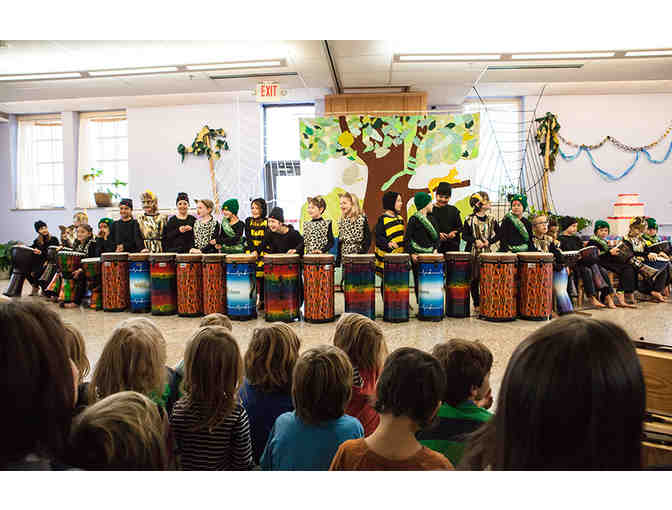 For our class play, Anansi Tales, the second graders worked together to make a jungle scene. Many little hands worked hard to cut and glue the mosaic of leaves on the tree that surrounds Leopard, Boa, the Hornets, and of course - the ever-so-tricky Anansi. Maybe this will be a backdrop for theatrical productions at YOUR house!